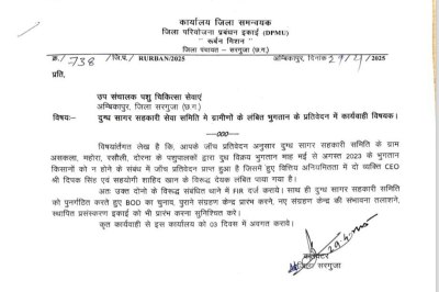 अंबिकापुर.दुग्ध सागर सहकारी सेवा समिति, अंबिकापुर में करीब 18 लाख रुपए की कथित वित्तीय अनियमितता (Big scam) के मामले में 4 महीने बीत जाने के बाद भी अब तक एफआईआर दर्ज नहीं की गई है। यह मामला समिति के तत्कालीन सीईओ दीपक सिंह और शाहिद खान से जुड़ा हुआ है। पशुपालन विभाग की जांच के बाद कलेक्टर सरगुजा ने 29 अप्रैल 2025 को एफआईआर दर्ज करने का आदेश दिया था, लेकिन अब तक थाने में मामला दर्ज नहीं हो सका है। यह आदेश उप-संचालक पशु चिकित्सा सेवाएं को दिया था।