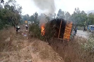 अंबिकापुर. शहर के भट्ठी रोड निवासी कार सवार 2 युवकों की ट्रक की टक्कर (Breaking News) से लगी आग में जिंदा जलकर मौत हो गई। दरअसल दोनों युवक कार से शनिवार की दोपहर बिलासपुर की ओर जा रहे थे। वे कोरबा जिले के बांगो थाना क्षेत्र अंतर्गत अंबिकापुर-बिलासपुर नेशनल हाइवे पर चोटिया से आगे पहुंचे ही थे कि सामने से आ रहे तेज रफ्तार ट्रक ने उन्हें टक्कर मार दी। टक्कर इतनी भीषण थी कि कार सडक़ के नीचे जा गिरी और उसमें आग लग गई। इधर ट्रक भी कार के ऊपर चढ़ गया। इससे वह भी आग की चपेट में आ गया।