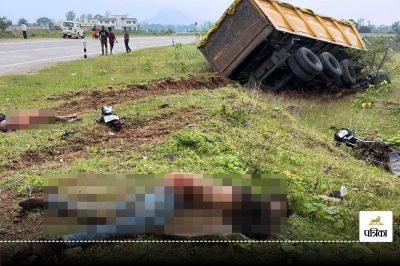 टक्कर के बाद दोनों सडक़ पर जा गिरे। इस दौरान हाइवा दोनों को कुचलते हुए सडक़ किनारे खेत में जाकर धंस गया। हादसे में दोनों युवकों की मौके पर ही मौत हो गई। इधर हाइवा का ड्राइवर व खलासी मौके से फरार (Hit and run) हो गए।