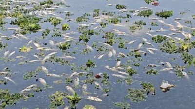 अंबिकापुर. शहर के मैरिन ड्राइव तालाब में बुधवार की सुबह हजारों मछलियां मरी हुईं मिली। किस वजह से मछलियों की मौत हुई है, इसका स्पष्ट नहीं हो सका है। हालांकि आक्सीजन की कमी के कारण मौत की संभावना जताई जा रही है। मछलियों के मरने से ठेकेदार को काफी नुकसान हुआ है। उसके द्वारा मरी हुई मछलियों को बाहर निकलवाकर तालाब की सफाई कराई जा रही है।