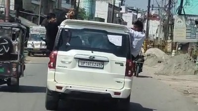 Amroha News: अमरोहा के कैलसा बाईपास पर चलती कार से खतरनाक स्टंट करते युवकों का वीडियो सोशल मीडिया पर वायरल हो गया है। युवक एक बारात में शामिल होने आए थे और स्टंट करते हुए न सिर्फ अपनी जान खतरे में डाली, बल्कि ट्रैफिक नियमों की भी अनदेखी की।