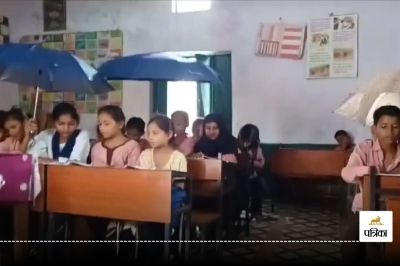 Viral Video क्लास चल ही थी छत टपक रही है और बच्चे छाता लेकर पढ़ रहे हैं। इसका वीडियो वायरल होने से हड़कंप मचा है।