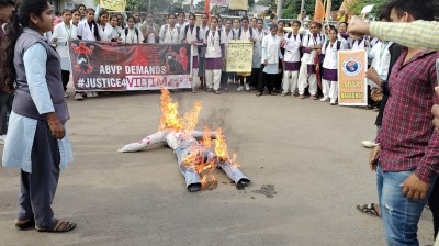 अखिल भारतीय विद्यार्थी परिषद के प्रांत सह मंत्री सुव्रत बाझल ने बताया कि परिषद ने नर्सिंग छात्राओं, पदाधिकारियों और कार्यकर्ताओं के साथ मिलकर बंगाल घटना का विरोध जताया है। उन्होंने बताया कि मरीजों की सेवा में लगी चिकित्सक के साथ किया गया कृत्य अमानवीय और शर्मनाक है। बावजूद इसके बंगाल सरकार आरोपियों पर कार्यवाही करने के बजाए उन्हें संरक्षण देने का काम कर कर रही है। जिला संयोजक आदित्य अग्रवाल ने घटना की निंदा की। उन्होंने कहा कि बंगाल में महिलाएं असुरक्षित है। सरकार के असामाजिक तत्वों को संरक्षण देने से महिलाओं को ऐसी घटनाओं का डर हमेशा बना है। हमारी सरकार से मांग है कि महिला डॉक्टर के साथ घिनौनी हरकत करने वालो को फांसी की सजा दी जाए।