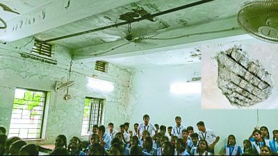 Dilapidated school building राशि स्वीकृति होने के बाद भी आज तक सांकरा (ज) में स्कूल भवन का निर्माण शुरू नहीं हुआ है। आज भी बच्चे जर्जर भवन में बैठकर पढ़ने मजबूर हैं। स्कूल की छत से पानी टपक रहा है और प्लास्टर उखड़ रहा है। लोक निर्माण विभाग का कहना है कि वित्त विभाग के आदेश का इंतजार है। नए स्कूल भवन के लिए राशि स्वीकृत हो चुकी है। टेंडर भी हो गया, लेकिन खुला नहीं है।