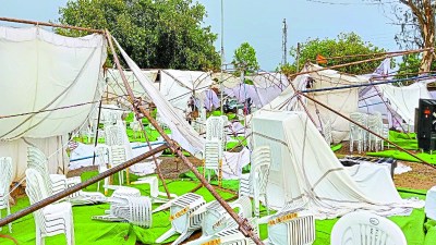 जगन्नाथपुर में कुर्मी समाज के सामाजिक कार्यक्रम के लिए लगाया गया पंडाल भी तेज हवा से गिर गया, जिससे संचालक को काफ़ी नुकसान हुआ है।