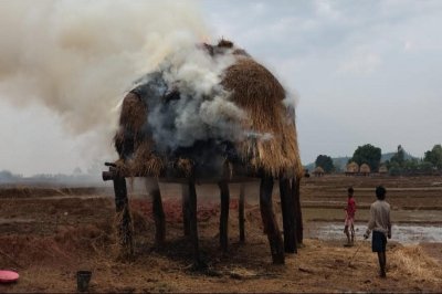 इस बीच वहां आकाशीय बिजली गिर (Sky lightning) गई। जब बारिश रुकी तो मजदूर झोपड़ी से बाहर आए तो देखा कि वहां 2 मचान से धुआं का गुबार उठ रहा है और आग लगी हुई है।