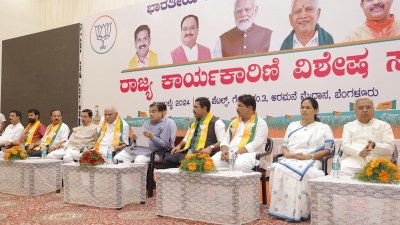 बैठक में भाजपा के प्रदेश अध्यक्ष बीवाई विजयेंद्र, कर्नाटक के लिए भाजपा के चुनाव प्रभारी राधामोहन दास अग्रवाल, विपक्ष के नेता आर. अशोक, केंद्रीय मंत्री वी. सोमण्णा और शोभा करंदलाजे, पूर्व मुख्यमंत्री जगदीश शेट्टर और बसवराज बोम्मई ने हिस्सा लिया।