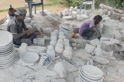 गढ़ी (बांसवाड़ा). धातुओं, मिट्टी और प्लास्टिक के आकर्षक बर्तनों ने गढ़ी कस्बे में दशकों से पत्थरों को हाथों से गढक़र तैयार किए जा रहे खूबसूरत बर्तनों की मांग भले ही स्थानीय बाजार में कम कर दी हो, मगर ये हस्तशिल्प उत्पाद विदेशियों को खूब पसंद आ रहे हैं। राजस्थान में आते देसी-विदेशी पर्यटकों के अलावा विदेशों तक इन बर्तनों की मांग है।