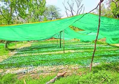 पौध को धूप से बचाने के लिए ग्रीन नेट से ढका