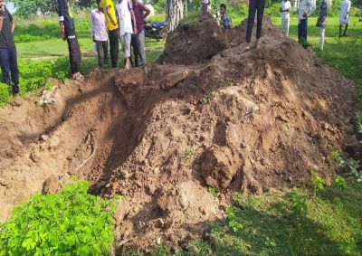 बीती रात अज्ञात लोगों ने धन के लालच में जेसीबी से कर दी खुदाई, बुधवार सुबह ग्रामीणों को मिले घड़े के टुकड़े, वर्ष पहले भी किया था प्रयास, जाग होने पर ग्रामीणों ने दौड़ाया था