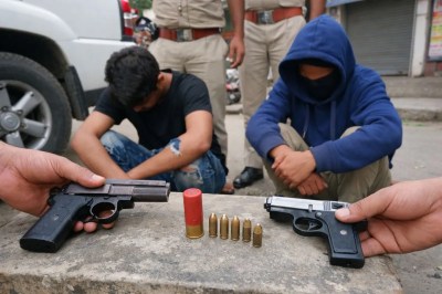 पुलिस अधीक्षक अभिषेक अंदासु ने बताया कि कोतवाली थाना प्रभारी योगेश चौहान की टीम रविवार रात न्यू मोटर मार्केट, शाहाबाद रोड क्षेत्र में गश्त कर रही थी। बंद दुकानों के पास दो युवक संदिग्ध अवस्था में खड़े दिखाई दिए। पुलिस ने घेराबंदी कर दोनों को डिटेन किया। तलाशी लेने पर विरेन्द्र सिंह रघुवंशी उर्फ बाबू बंडल (18 वर्ष 6 माह), निवासी कंसुआ कोटा के पास से एक देशी कट्टा और एक कारतूस मिला। उसके साथ मौजूद नाबालिग के कब्जे से एक देशी पिस्टल और चार कारतूस बरामद किए गए। दोनों के खिलाफ कोतवाली थाने में मामला दर्ज कर जांच शुरू की गई है।