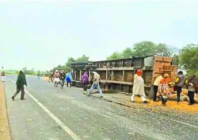 ग्राम वासियों ने बताया कि गांव से होकर निकल रहे रोड पर अधिक घुमाव होने से इस स्थान पर आए दिन वाहन पलटने से दुर्घटना होने का अंदेशा रहता है। घटना में ट्रक पलटने से उसमें लदी बोरियां सडक़ पर बिखर गईं। मक्का बटोरने के लिए बड़ी संख्या में वहां लोग पहुंच गए।