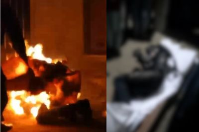 सोशल मीडिया पर दहला देने वाला वीडियो वायरल हुआ है। एक युवक के जिस्म से आग की लपटे निकल रही हैं। इस पूरे नजारे का लोगों ने वीडियो बना लिया। कुछ लोग कंबल डालकर आग बुझाने का प्रयास करते दिख रहे हैं। बताया जा रहा है कि आग का गोला बने युवक की बाद में मौत हो गई। फिलहाल पुलिस ने शव को पोस्टमार्टम के लिए भेजा है।