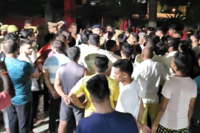 भीड़ पहुंची थाने, एसपी के समझाने पर माने लोग