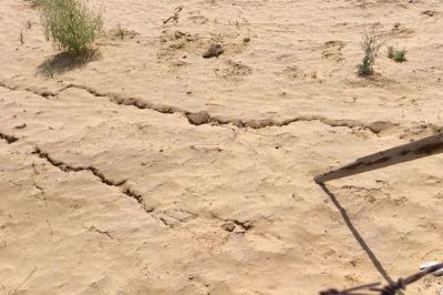 बाड़मेर। बीकानेर में जमीन धंसने से हुए 82 फीट के गड्ढ़े के बाद अब बाड़मेर में 2 किलोमीर तक जमीन दरक गई है। घटना के बाद स्थानीय हैरान हैं। सूचना पर मौके पर पहुंची जियोलॉजिकल टीम जांच में जुटी है। जमीन दरकने की घटना बाड़मेर जिले के नागाणा इलाके में हुई है। रहस्यमय तरीके से करीब 2 किलोमीटर की जमीन में दरार आ गई। ये दरार किसानों के खेतों में आई है जिससे स्थानीय लोग हैरान हैं। उनका कहना है कि इसके पहले खेतों में कोई दरार नहीं आई थी। यह पहली बार है, जब उनके खेतों में दरार आई है। घटना के कई वीडियो और फोटो सोशल मीडिया में वायरल है।
