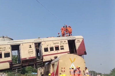 NDRF Mock Drill: ट्रेन के डिब्बे एक दूसरे के ऊपर चढ़े हुए थे। इसके बाद सभी टीमों ने मौके पर मोर्चा संभाला। सबसे पहले ट्रेन के डिब्बों के ऊपर चढ़ा गया। इसके बाद यात्रियों को ट्रेन से सुरक्षित निकालने का काम शुरू हुआ।