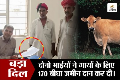 Great Donation: राजस्थान में ही नहीं देश के लगभग सभी हिस्सों में जमीन - जायदाद के लिए परिवार में ही हत्याएं हो जाना आम बात है। जमीन दान देना तो दूर की बात है। लेकिन राजस्थान के बाड़मेर जिले में रहने वाले दो भाईयों ने पांच लाख गज से भी ज्यादा यानी करीब 171 बीघा जमीन गोचर के लिए दान कर दी है। इसके दस्तावेज प्रशासनिक अफसरों को सौंप दिए हैं। सबसे बड़ी बात ये है कि जमीन उपजाऊ है। राजपूत समाज से ताल्लुक रखने वाले दोनो भाई खेत सिंह और भीमसिंह हैं। अच्छी बात ये भी है कि दोनो ही भाईयों का परिवार इस फैसले से खुश है।