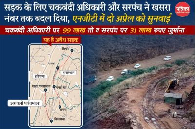 मामला वन विभाग के अपर मुख्य सचिव तक पहुंचा तो वन विभाग ने चकबंदी अधिकारी व सरपंच पर 99 लाख 22 हजार 500 रुपए व 31 लाख 51 हजार 440 रुपए का जुर्माना लगाया। जब इसे नहीं चुकाया गया तो फिरोजपुर झिरका कोर्ट में केस दायर किया गया है। एनजीटी में 2 अप्रेल को सुनवाई होनी है। दरअसल राजस्थान के खनन माफिया की ओर से सीमा से सटे पहाड़ों पर अवैध खनन व सामग्री को क्रशर प्लांटों तक पहुंचाने के लिए आसान रास्ता नहीं था इसलिए 85 लाख रुपए चंदे से जुटाकर सड़क बनाई गई। 27 नवंबर 2024 को डीएफओ के आदेश पर वन विभाग ने रास्ता भी बंद करा दिया, लेकिन सरपंच व चकबंदी अधिकारी ने रातोंरात रास्ता खुलवा दिया। ऐसा बार-बार हो रहा है।
