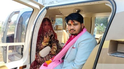 भरतपुर के जाटौली घना गांव में एक शादी चर्चा का विषय बनी रही। दूल्हा राजीव अपने दादा का सपना पूरा करते हुए दुल्हन को हेलीकॉप्टर से विदा कराकर घर लाया।