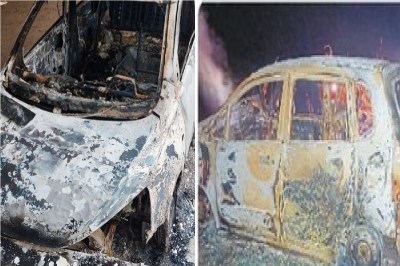 CG Accident News: भिलाई जिले में रामपायली थाना क्षेत्र के ग्राम पूनी के पास गुरुवार देर रात एक कार पेड़ से टकरा गई। हादसे के बाद कार में आग लग गई।