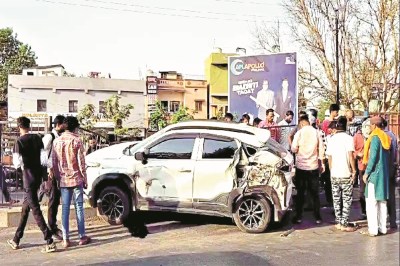 CG Road Accident: भिलाई के पास फ्लाई ओवर में सोमवार की शाम एक कार अनियंत्रित होकर डिवाइडर पर रेलिंग तोड़ते हुए चढ़ गई। कार में एक महिला व दो युवक सवार थे। हादसे में कार सवारों को मामूली चोट लगी हैं, वहीं कार बुरी तरह से क्षतिग्रस्त हो गई है। घटना की खबर मिलते ही यातायात पुलिस के जवान मौके पर पहुंचे।