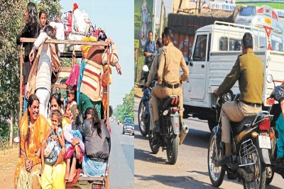 Road Safety Month: दो पहिया चालक बगैर हेलमेट के नजर आए। यहां किसी प्रकार की कोई कार्रवाई या रोकटोक नहीं दिखी। महिला चालक चेहरे पर स्कार्फ बांधी नजर आई, लेकिन हेलमेट पहनना मुनासिब नहीं समझा।