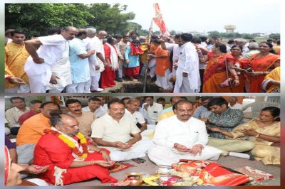 ध्वज पूजा व भूमि पूजन का नेतृत्व पं. अशोक व्यास ने किया। उनके साथ पं. देवेन्द्र शास्त्री, मुरली शास्त्री, विनोद शास्त्री, ऋषि शास्त्री, हिमांशु शास्त्री, सुशील पुजारी और रमाकांत शास्त्री सहित कई वैदिक आचार्य मौजूद रहे।