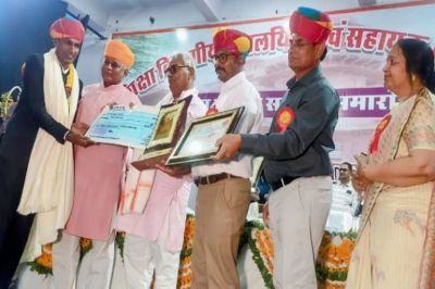 Bhilwara news : शिक्षा विभाग का 32वां राज्य स्तरीय मंत्रालयिक कर्मचारी पुरस्कार सम्मान समारोह बीकानेर में आयोजित किया गया। समारोह में 90 शिक्षकों को सम्मानित किया। इसमें भीलवाड़ा जिले के चार शिक्षक भी शामिल हैं। समारोह में शिक्षा मंत्री मदन दिलावर, सचिव स्कूल शिक्षा कृष्ण कुणाल, माध्यमिक शिक्षा निदेशक सीताराम जाट ने जिला शिक्षा अधिकारी (मुख्यालय) माध्यमिक शिक्षा के अतिरिक्त प्रशासनिक अधिकारी नरेश कुमार बाहेती को 11 हजार रुपए, प्रतिक चिन्ह व प्रशस्ति पत्र देकर सम्मानित किया। इसके अलावा शाहपुरा सीबीईओ के प्रशानिक अधिकारी सुरेशकुमार मूंदड़ा, सहाड़ा सीबीईओ के अतिरिक्त प्रशासनिक अधिकारी पुष्पेंद्र बूलीवाल, शाहपुरा के कनेछनकला के अतिरिक्त प्रशासनिक अधिकारी पवन जीनगर को सम्मानित किया। महासंघ भीलवाड़ा के जिलाध्यक्ष आशुतोष आचार्य ने बताया कि समारोह में महावीरसिंह चूंडावत, संदीप बिश्नोई व मुकेश सेन भी उपस्थित थे।