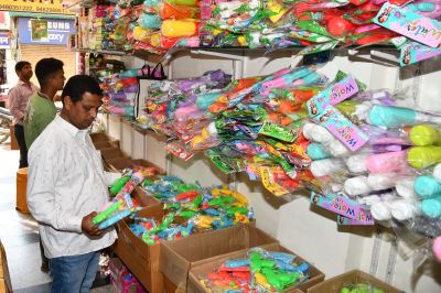 बाजार में पिचकारी व रंग-गुलाल की दुकानें सज गईं