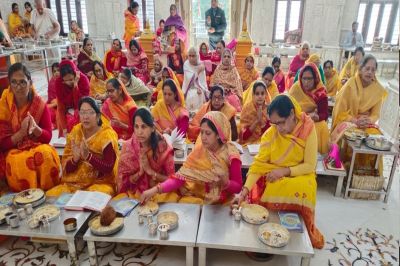 Bhilwara news : आरके कॉलोनी तरणताल के सामने स्थित आदिनाथ दिगम्बर जैन मंदिर में भक्तामर आरती की दसवीं वर्षगांठ पर भक्तामर विधान पूजन व शाम को भक्तामर की संगीतमय आरती का आयोजन किया गया। उपाध्यक्ष चैनसुख शाह ने बताया कि सुबह मूलनायक आदिनाथ भगवान पर प्रथम अभिषेक व शांतिधारा अशोक गंगवाल ने की। प्रेमचन्द सेठी, सुरेन्द्र गोधा, महावीर सेठी के सानिध्य में भक्तामर विधान किया गया। मुख्य कलश की स्थापनी लीना शाह ने की। सीमा जैन ने दीप प्रज्जवलित कर विधान का मंगलाचरण किया। वीणा मंगल, शकुंतला गंगवाल, पिंकी शाह के संगीतमय भजनों के साथ मंजू सेठी, कौशल्या अग्रवाल, मीना हुमड, निशा शाह, सुलोचना सोनी, मीनाक्षी जैन, स्नेहलता पंचोली, कमला अग्रवाल, अंजना गोधा, रेखा पाण्ड्या, अंजली गदिया, मनफूल काला, सुशीला सोनी अन्य ने विधान पर श्रीफल चढ़ाकर आराधना की। सुमन सेठी ने विधान की आरती की। सायंकाल कमल नयन शाह, ज्ञानचन्द पाटनी, सुरेन्द्र गोधा के सहयोग से भक्तामर की संगीतमय बडी आरती की गई। मुख्य आरती अजित कुमार कौशल्या अग्रवाल के साथ रुपेन्द्र, रेखा गोधा, आत्मप्रकाश, पूजा लुहाडिया, मनोज, दीप्ति अजमेरा ने अपने थाल में 48 दीप प्रज्जवलन किए। इस दौरान श्रावक-श्राविकाओं ने भक्ति नृत्य किया।