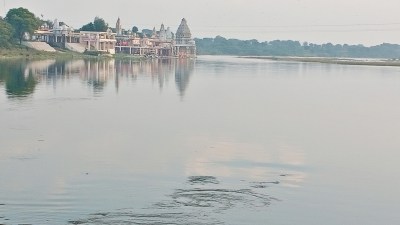 Bisalpur dam News : बेमौसम हो रही बरसात से त्रिवेणी नदी सोमवार शाम फिर उफान पर आ गई। इससे त्रिवेणी संगम पर शिव मंदिर का घाट पानी में डूब गया। मध्यप्रदेश और चित्तौड़गढ़ में हुई बारिश का असर त्रिवेणी पर नजर आया।