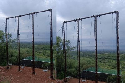 भीलवाड़ा। हमीरगढ़ वन क्षेत्र का कंजर्वेशन रिजर्व क्षेत्र स्थित हमीरगढ़ इको पार्क में इंडोनेशिया के प्रसिद् बाली स्विंग (आसमान का छूते झूले) अब पर्यटकों के लिए तैयार हैं। उच्च स्तरीय तकनीकी टीम की मंजूरी के बाद झूले पर्यटकों के लिए खोल दिए जाएंगे। झूले के नीचे के हिस्से में भी पर्यटक सुरक्षित रहे, इसलिए सुरक्षा का बड़ा जाल बिछाया गया है। दूसरी तरफ बैंकाक के ट्री हाउस की तर्ज पर यहां ट्री हाउस बनाए हैं।