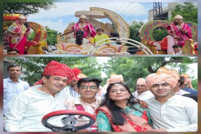 गाजे बाजे के साथ भक्ति नृत्य करते हुए निकाला जुलूस