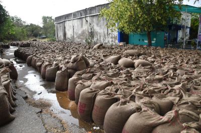 भीलवाड़ा कृषि उपज मंडी में एफसीआई के खरीद केंद्र की व्यवस्था की पोल खुल गई। गुरुवार को हुई बारिश में खुले में रखी ढाई से तीन हजार बोरी गेहूं भीग गया। इसके अलावा मंडी में व्यापारियों व किसानों का गेहूं भी भीग गया। इससे व्यापारियों को लगभग 400 से 500 रुपए प्रति क्विंटल का नुकसान हुआ है।