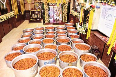 मुख्य डाकघर के सामने संकटमोचन हनुमान मंदिर में महंत बाबूगिरी के सानिध्य में पहली बार 2500 किलो केसर युक्त गुलाब जामुन का भोग लगेगा। मंदिर ट्रस्टी महावीर प्रसाद एवं रमेश अग्रवाल ने बताया कि हनुमान जी की प्रतिमा को स्वर्ण चोला चढ़ाया जाएगा। फूलों से श्रृंगार किया गया है। 11 किलो का केक भी काटा जाएगा। रात 8 बजे से बालाजी सत्संग मण्डल संगीतमय सुंदरकांड की प्रस्तुति देगा। मंदिर पर विशेष सजावट की गई है।