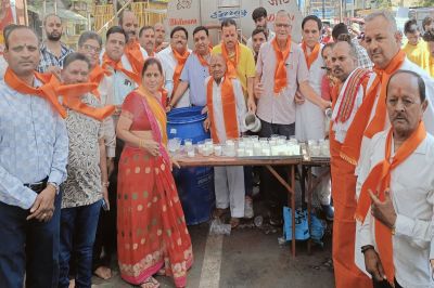संकट मोचन हनुमान मंदिर परिसर के बाहर भक्तों के सहयोग से 5 हजार लीटर छाछ का वितरण