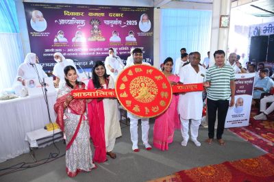 आध्यात्मिक राखी सूत्र, त्याग की राखी ओर मंत्रों की राखी की वेलकम एंट्री हुई तो पांडाल जयकारों से गूंज उठा