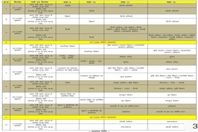 माध्यमिक शिक्षा निदेशक कार्यालय बीकानेर की ओर से सत्र 2025-26 की राज्य स्तरीय समान अर्द्धवार्षिक परीक्षा का कार्यक्रम घोषित कर दिया गया है। निदेशक एवं समग्र शिक्षा अभियान (समसा) के अतिरिक्त राज्य परियोजना निदेशक सीताराम जाट की ओर से जारी आदेश के अनुसार परीक्षाएं 20 नवंबर से 1 दिसंबर 2025 तक आयोजित की जाएंगी। परीक्षा दो पारियों में होगी। प्रथम पारी सुबह 9:30 से 12:45 बजे तक तथा द्वितीय पारी दोपहर 1:15 से शाम 4:30 बजे तक होगी।