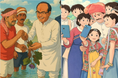 एमपी के पूर्व सीएम व वर्तमान केंद्रीयमंत्री शिवराज सिंह चौहान ने अपना Ghibli इमेज शेयर करते हुए लिखा कि, 'बिहार के दरभंगा में Ghibli जादू को अपनाते हुए। मखाना किसानों के साथ तालाब में खड़े होकर बीज बोना परंपरा और कलात्मकता का एक अद्भुत मिश्रण है।