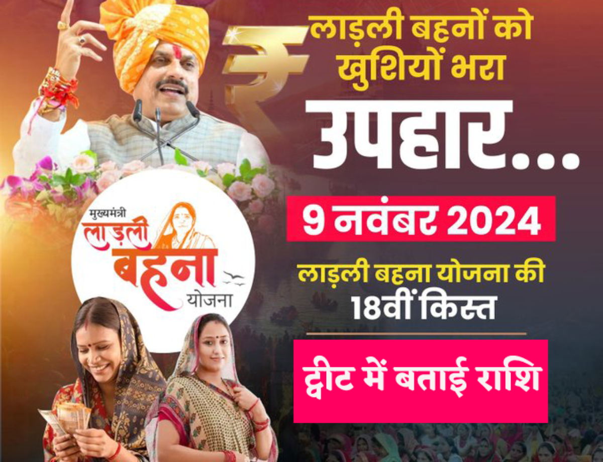 इससे पहले गुरुवार को भी सीएम मोहन यादव ने लाड़ली बहनों के लिए अपने एक्स हेंडल पर पोस्ट करते हुए उन्हें खुशखबरी दी थी। 7 नवंबर को सीएम ने ट्वीट करते हुए लाड़ली बहनों को शुभकामनाएं देते हुए उन्हें 9 नवंबर को योजना की राशि देने की सूचना दी थी। सीएम मोहन यादव ने अपने एक्स हेंडल पर लिखा था कि प्रदेश की 1.29 करोड़ लाड़ली बहनों के बैंक खातों में 1250 के मान से 1574 करोड़ अंतरित करूंगा।