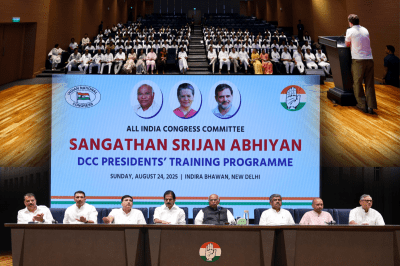 बता दें कि, दिल्ली के इंदिरा भवन में रविवार को मध्य प्रदेश और असम कांग्रेस के नवनियुक्त जिला अध्यक्षों को 'संगठन सृजन अभियान' कार्यक्रम के तहत 'पाठशाला' लगाई गई थी। जहां नवनियुक्त जिला अध्यक्षों को ट्रेनिंग दी गई। ये मीटिंग कांग्रेस दफ्तर में आयोजित हुई, जिसमें ऑल इंडिया कांग्रेस कमेटी के कई बड़े नेता शामिल हुए। वहीं, नेता प्रतिपक्ष राहुल गांधी भी बिहार में चल रही 'वोटर अधिकार यात्रा' को ब्रेक कर नए जिला अध्यक्षों की बैठक में शामिल होने दिल्ली पहुंचे थे। इस दौरान एमपी प्रदेश प्रभारी हरीश चौधरी, पीसीसी चीफ जीतू पटवारी, नेता प्रतिपक्ष उमंग सिंघार भी मौजूद थे।
