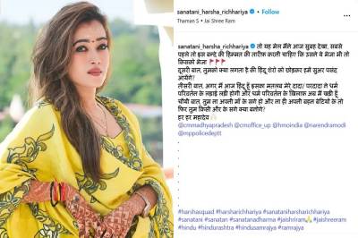असलम पठान के द्वारा मेल पर हर्षा रिछारिया को शादी का प्रस्ताव दिए जाने के बाद हर्षा ने इंस्टाग्राम पर एक पोस्ट कर अपना जबाव दिया है। इस पोस्ट में हर्षा ने जो लिखा है वो अक्षरश: इस प्रकार है- तो यह मेल मैंने आज सुबह देखा, सबसे पहले तो इस बन्दे की हिम्मत की तारीफ करनी चाहिए कि उसने ये भेजा भी तो किसको भेजा। दूसरी बात, तुमको क्या लगता है की हिंदू शेरो को छोड़कर हमें सुअर पसंद आएंगे। तीसरी बात, अगर मैं आज हिंदू हूं इसका मतलब मेरे दादा/ परदादा ने धर्म परिवर्तन की लड़ाई लड़ी होगी और धर्म परिवर्तन के खिलाफ अब मैं खड़ी हूं। चौथी बात, तुम ना अपनी मां के सगे हो और न ही अपनी बहन बेटियों के तो फिर तुम किसी और के सगे क्या होगे।