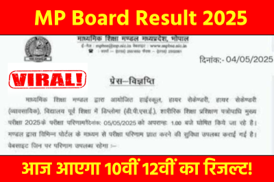 MP Board Class 10th 12th Result : मध्यप्रदेश के लाखों स्टूडेंट अपने रिजल्ट का बड़ी बेसब्री से इंतजार कर रहे हैं। आज ये इंतजार खत्म होने वाला है। ऐसा हम नहीं कह रहे बल्कि ये दावा सोशल मीडिया पर वायरल एक प्रेस विज्ञप्ति में किया गया है।