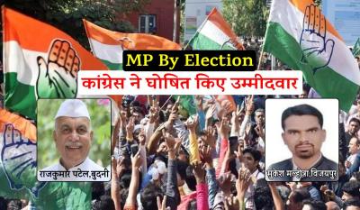 MP By Election Congress Candidate Declared: मध्यप्रदेश की बुदनी (budhni) और विजयपुर विधानसभा सीट (vijaypur vidhansabha seat) पर उपचुनाव (by election) के लिए भाजपा के बाद अब कांग्रेस ने भी अपने उम्मीदवारों के नामों का ऐलान कर दिया है। विजयपुर सीट से कांग्रेस ने मुकेश मल्होत्रा को अपना उम्मीदवार बनाया है तो वहीं बुदनी से राजकुमार पटेल को प्रत्याशी बनाया गया है। बता दें कि एक दिन पहले ही भाजपा ने भी बुदनी और विजयपुर उपचुनाव के लिए अपने उम्मीदवार घोषित किए थे। भाजपा ने बुदनी से रमाकांत भार्गव और विजयपुर से रामनिवास रावत को उम्मीदवार बनाया है।