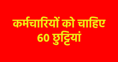 छुट्टी मांगी है। मध्यप्रदेश कर्मचारी मंच ने सरकार से हर साल वेतन सहित 60 दिनों का अवकाश मांगा है। मंच ने रविवार की छुट्टी सहित ये अवकाश मांगे हैं।
