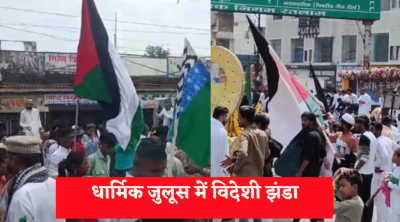 Palestine flags waved in mp कई जगहों पर ईद के जुलूस में फिलिस्तीन का झंडा लहराया गया। विदेशी झंडा लहराने पर पुलिस ने सख्ती दिखाई।