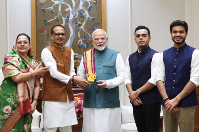 Shivraj Singh Chouhan Son Wedding : मध्यप्रदेश के मामा कहे जाने वाले पूर्व मुख्यमंत्री शिवराज सिंह चौहान के घर जल्द शादी की शहनाइयां बजने वाली है। इनके दोनों बेटे कार्तिकेय चौहान और कुणाल चौहान जल्द ही दुल्हनिया घर लाने वाले है। खुशी के इस मौके पर पूर्व सीएम ने गणेश जी के बाद सबसे पहला निमंत्रण देश के प्रधानमंत्री नरेंद्र मोदी को दिया। पीएम को न्यौता देने शिवराज सिंह चौहान परिवार समेत पहुंचे। इस खास पल की तस्वीरों को शिवराज सिंह ने अपने एक्स पर शेयर किया है।
