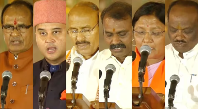 Shivraj Singh Chouhan Jyotiraditya Scindia Virendra Kumar Savitri Thakur Durgadas Uikey PM Narendra Modi Cabinet प्रधानमंत्री नरेंद्र मोदी ने अपनी केबिनेट में मंत्रियों को विभागों का बंटवारा कर दिया है। सोमवार शाम को एमपी के तीनों केंद्रीय मंत्रियों और दोनों राज्यमंत्रियों को भी विभाग आवंटित किए गए हैं। एमपी में ओबीसी के सबसे बड़े चेहरे शिवराज सिंह चौहान को दो अहम मंत्रालय दिए गए हैं। उन्हें कृषि और पंचायत एवं ग्रामीण विकास मंत्री बनाया गया है। ज्योतिरादित्य सिंधिया को टेलिकॉम, विभाग का दायित्व सौंपा गया है। इधर वीरेंद्र कुमार खटीक को फिर सामाजिक न्याय विभाग का मंत्री बनाया गया है।