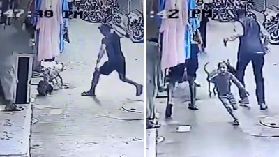 कुत्ते ने एक ही बार में अलग-अलग दो बच्चों पर हमला किया, जिसकी घटनी इलाके में लगे सीसीटीवी कैमरे में कैद हो गई।