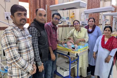 स्त्री एवं प्रसूती रोग विशेषज्ञ डॉ. मोनिका रंगा, निश्चेतन विशेषज्ञ डॉ. गौरव जोशी, नर्सिंग ऑफिसर इंद्रपाल, सुदेश तथा सुमन सिजेरियन करने वाली टीम में शामिल थे। जिला अस्पताल के नवजात एवं शिशु रोग विशेषज्ञ डॉ. मनीष पुष्करणा ने बताया कि सामान्य तौर पर बच्चे का जन्म के समय वजन 2.5 किलो होता है। शुगर से पीड़ित महिला के बच्चे का वजन अक्सर अधिक होता है, लेकिन इस महिला और बच्चे दोनों के मधुमेह रिपोर्ट नहीं हुई। पौने पांच किलो वजनी नवजात बच्चे का उपचार फिलहाल जिला अस्पताल की नर्सरी में किया जा रहा ह, और निरंतर उसके स्वास्थ्य की मॉनिटरिंग की जा रही है।